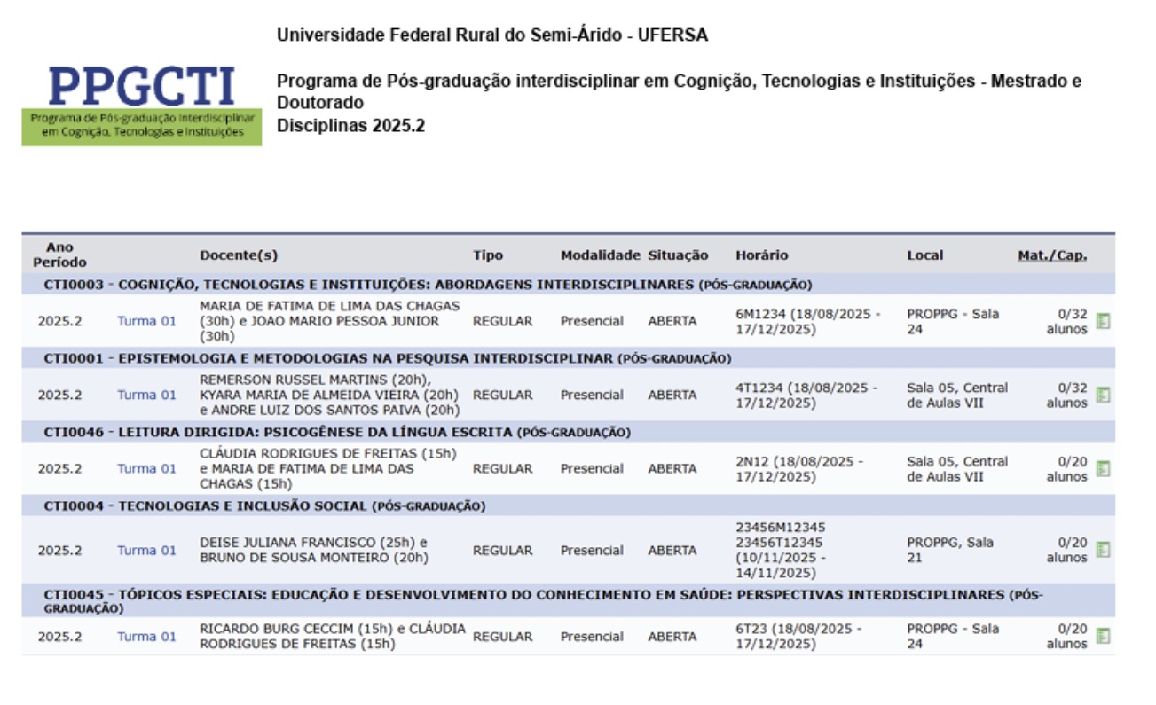Disciplinas 2025-2 – Mestrado e Doutorado